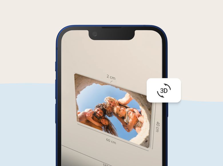 Se dine vægdekorationer komme til live i 3D, og få en fornemmelse af rammens størrelse, tykkelse og finish.