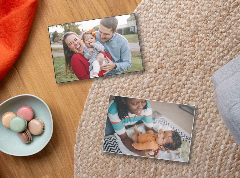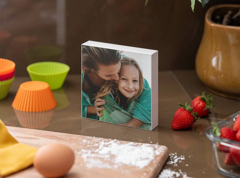 Til forældre: Overrask din mor eller far med en fotoblok på træ eller plexiglas af jeres seneste familiesammenkomst eller et sødt billede fra din barndom.