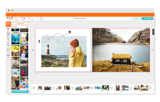 Det er tid til at slippe kreativiteten løs! Leg med layouts, levende baggrunde, cliparts og tekster for at designe din helt egen fotobog.
