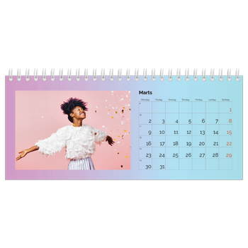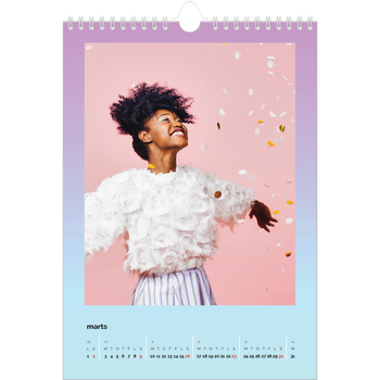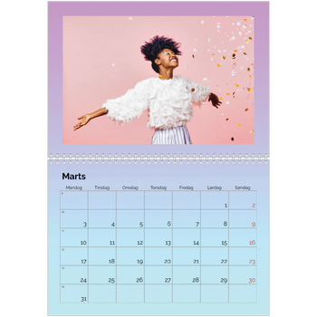 - Tilføj dit personlige præg: Pift det op med figurer, forskellige layouts og farver. Marker dine særlige datoer, vælg papirkvaliteten, og start din kalender i den måned, der passer dig bedst.